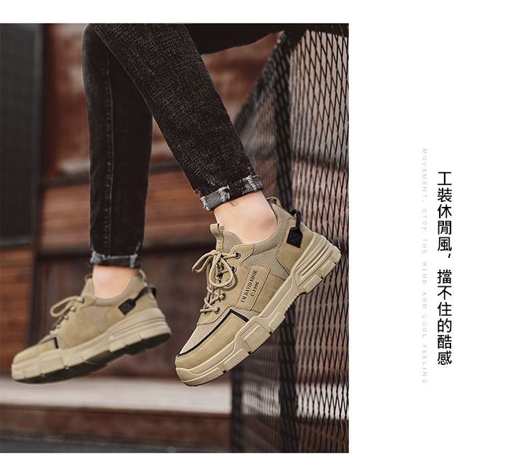 【復古工裝范】男士戶外休閒鞋【沙色】一雙