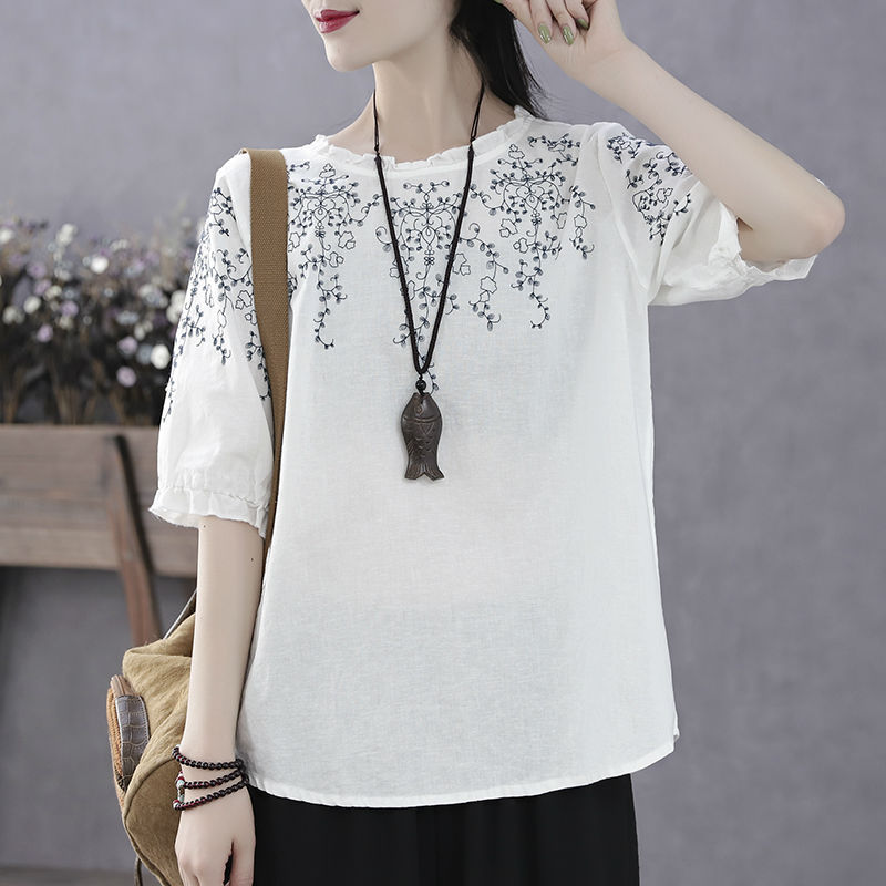 花邊洋氣寬鬆大碼上衣【白色】兩件(到手兩件,每件均價499元)