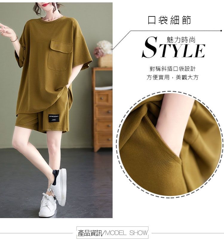 口袋設計時尚女士短袖套裝【買一送一】灰色+黃色各一套(到手兩套,每套均價549元)