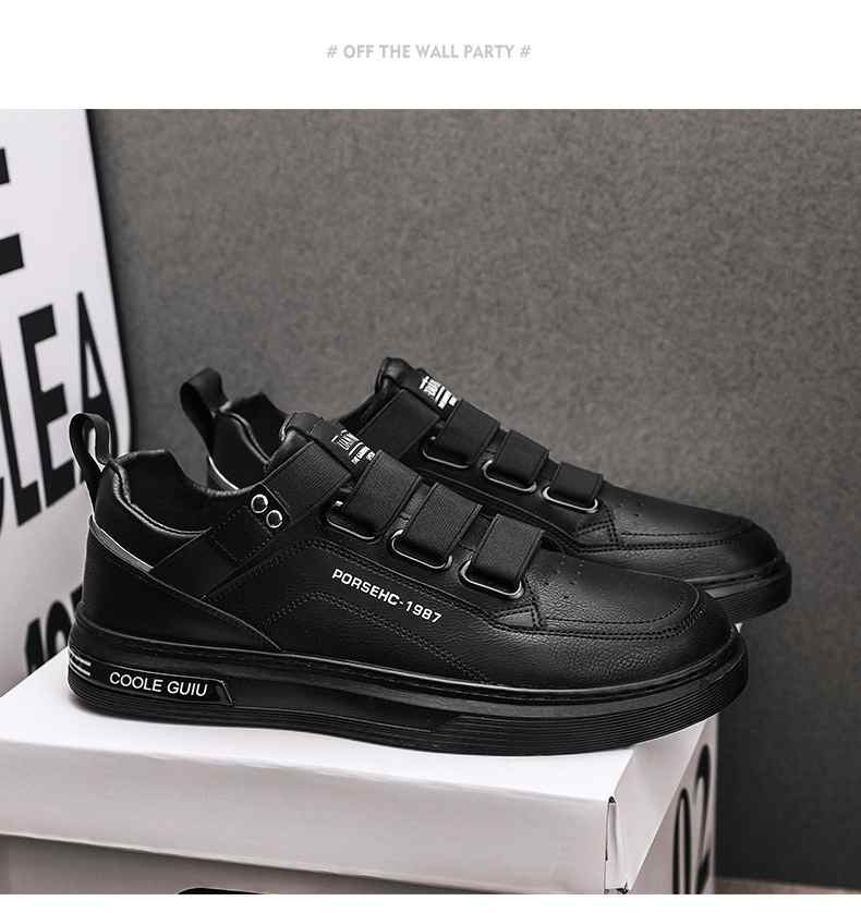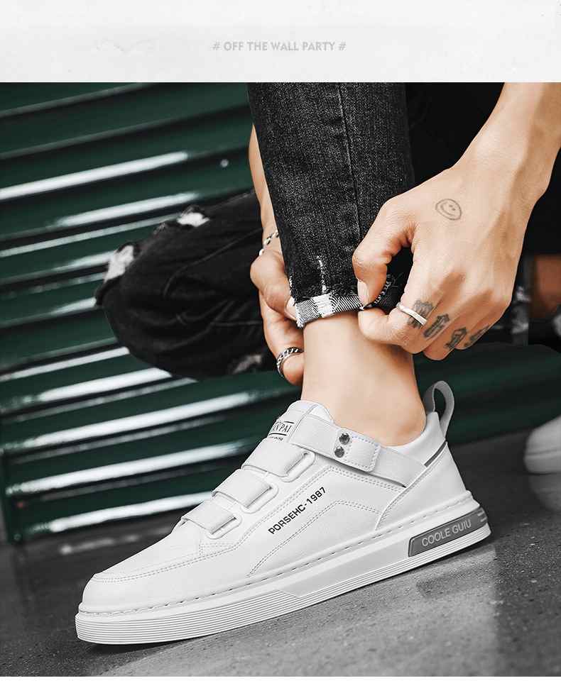 四季可穿無鞋帶皮革休閒男鞋【白色】+【黑色】各一雙(到手2雙,每雙均價549元!)