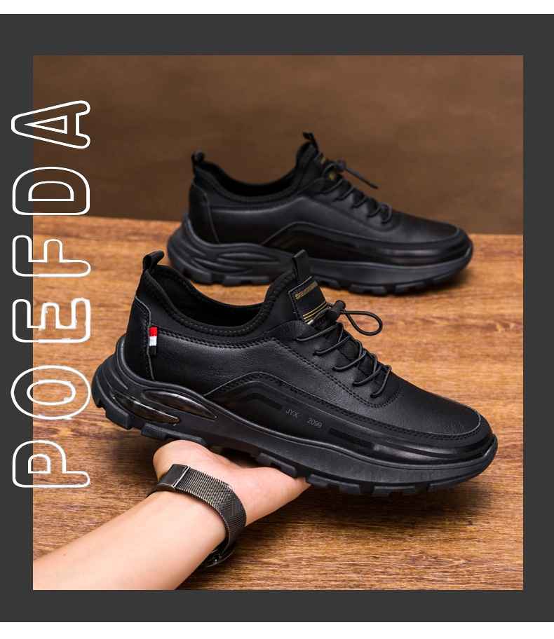 簡約流暢輕便舒適透氣皮面休閒鞋【買一送一】黑色2雙(到手2雙,每雙均價549元!)