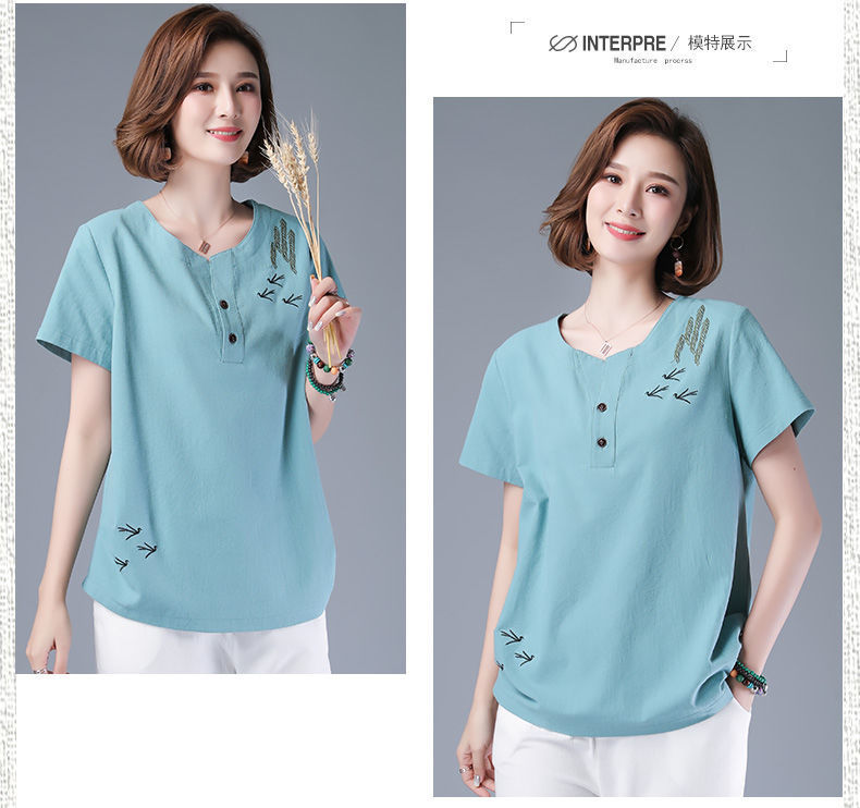 棉麻復古風短袖女士T恤【買一送一】粉色+藍色各一件(到手2件!每件均價549元!)