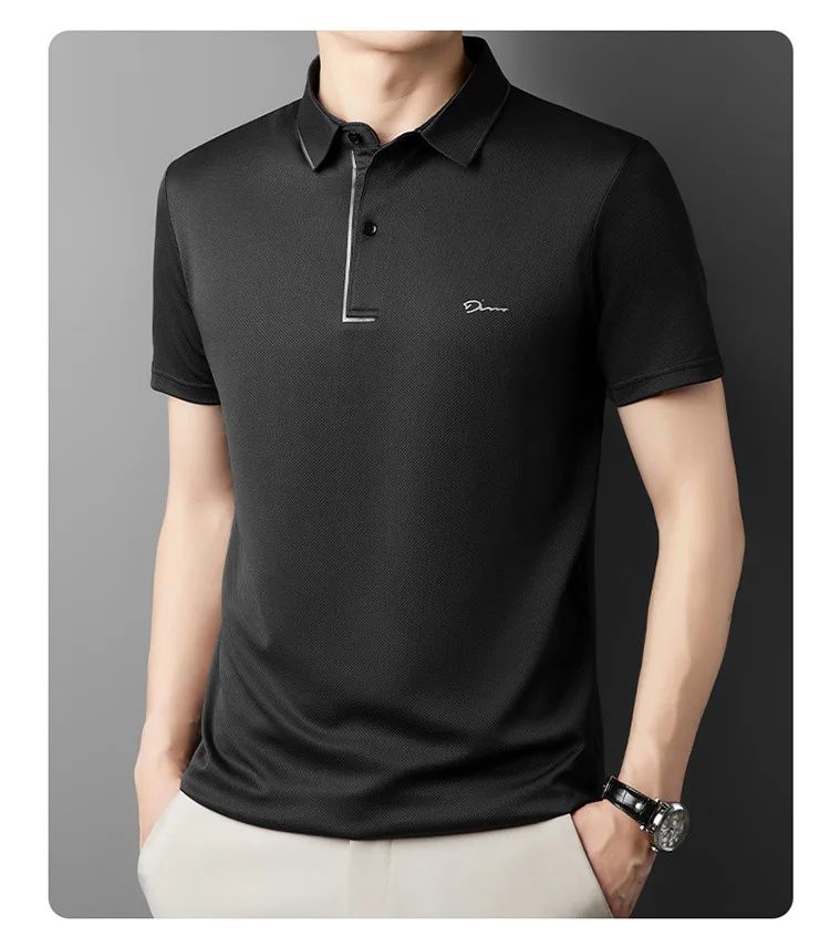 簡約透氣冰絲速乾無痕POLO衫【買一送一】【黑色】+【綠色】各一件(到手兩件,每件均價649元!)
