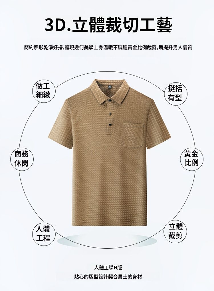 透氣冰絲翻領短袖POLO衫【買一送一】【棕黃】+【白色】各一件(到手兩件,每件均價649元!)