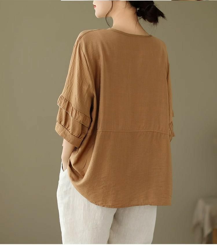 立體寬鬆顯瘦圓領排扣小衫【卡其色】兩件(到手兩件,每件均價499元)