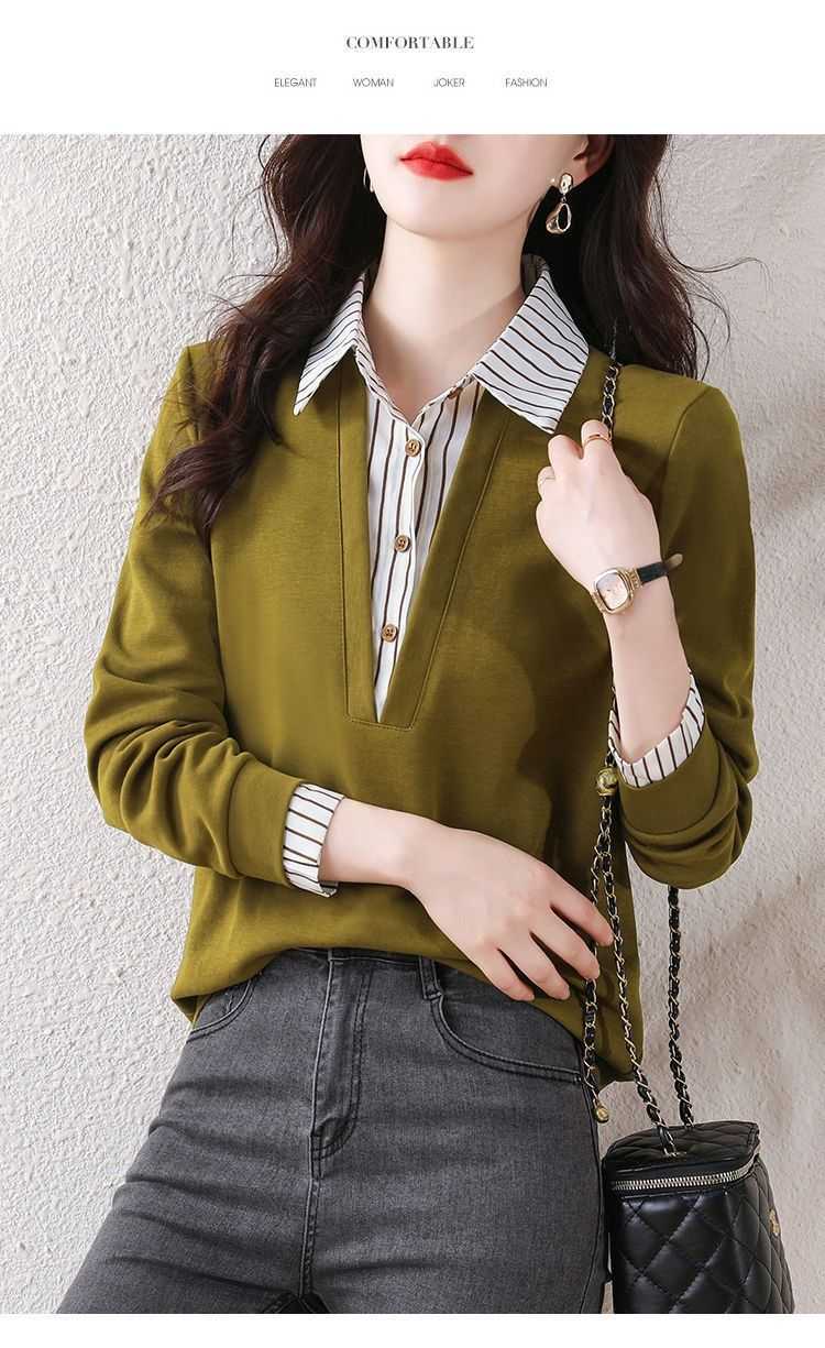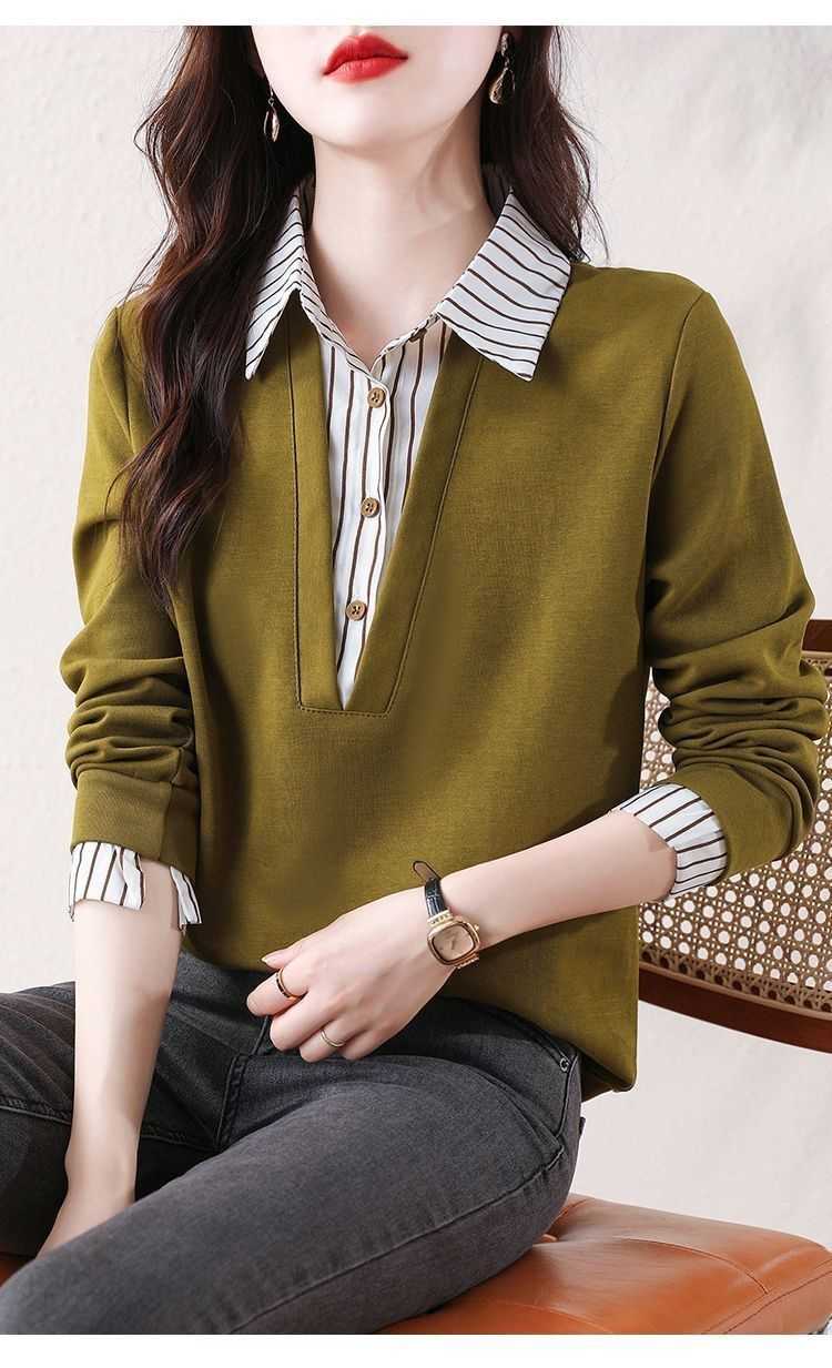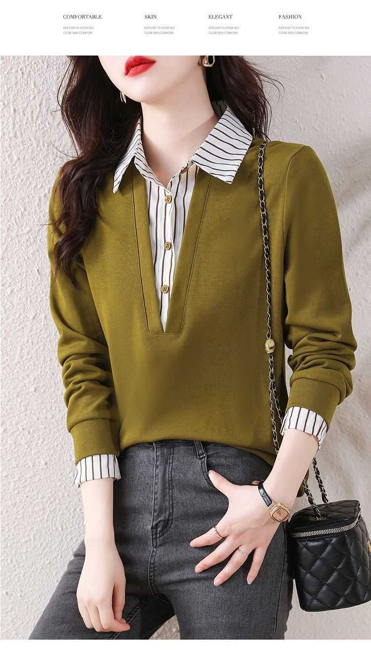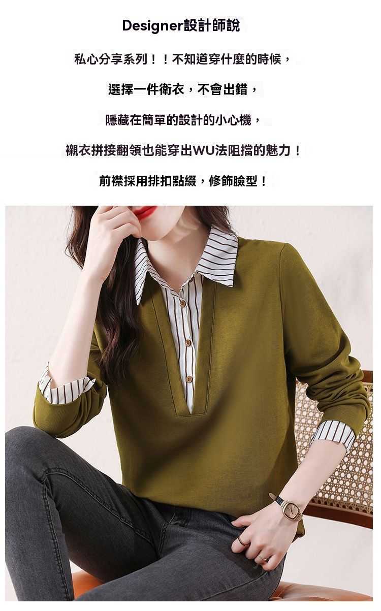 假兩件條紋時尚減齡拼接衛衣【買一送一】黃色+黑色各一件(到手2件,每件均價649元!)
