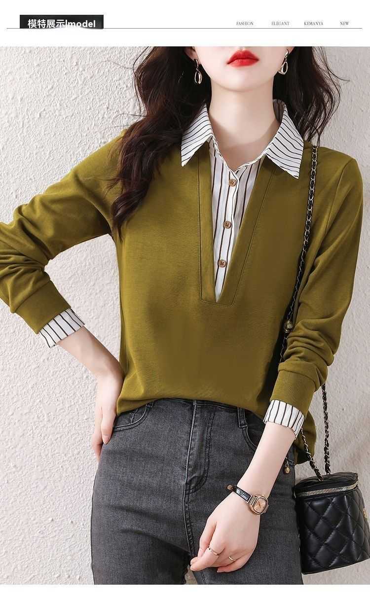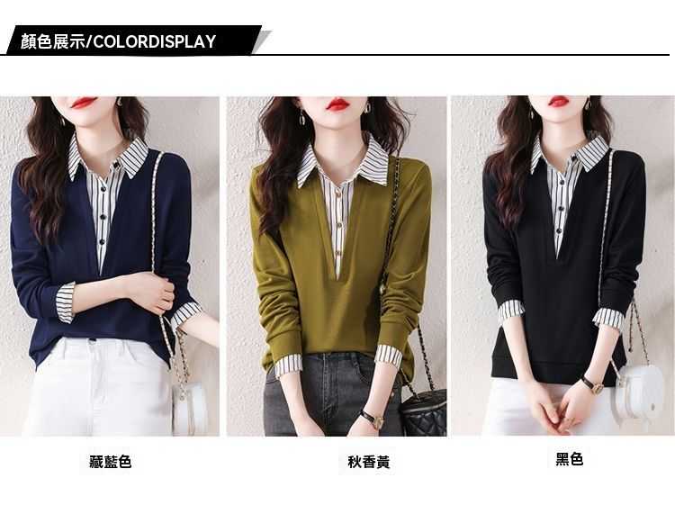 假兩件條紋時尚減齡拼接衛衣(加400秒殺3件!)藏青色+黃色+黑色各一件(到手3件,每件均價566元!)