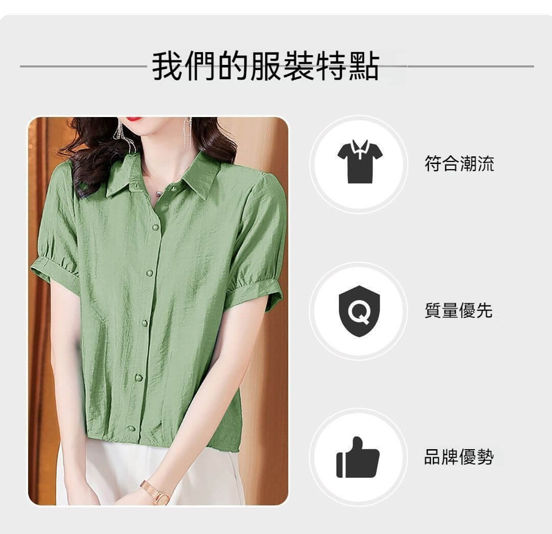 時尚顯瘦洋氣棉麻純色短袖襯衫【買一送一】【卡其色】+【綠色】各一件(到手兩件,每件均價549元!)
