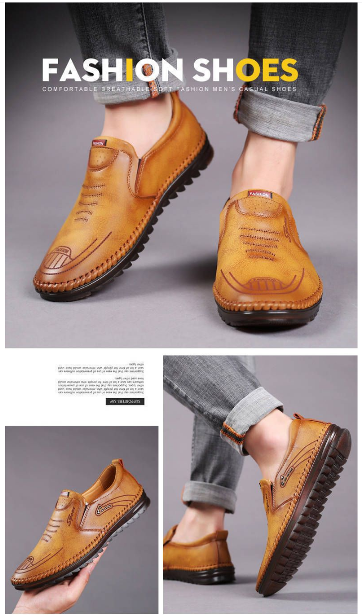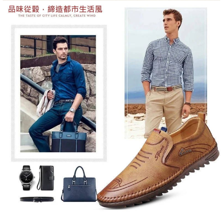 純牛皮男士潮流休閒鞋【買一送一!】【卡其色】+【黑色】各一雙(到手兩雙,每雙549元!)