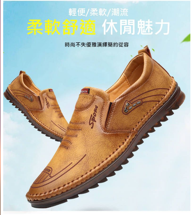 純牛皮男士潮流休閒鞋【買一送一!】【卡其色】+【米白色】各一雙(到手兩雙,每雙549元!)