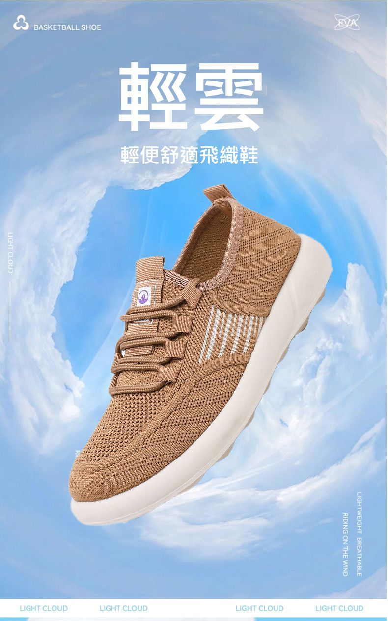 貼合腳部曲線舒適繫帶柔軟透氣飛織鞋【買一送一】【駝色】兩雙(到手兩雙,每雙均價549元!)