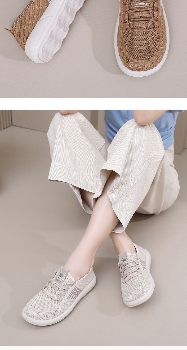 貼合腳部曲線舒適繫帶柔軟透氣飛織鞋【買一送一】【駝色】+【米白色】各一雙(到手兩雙,每雙均價549元!)