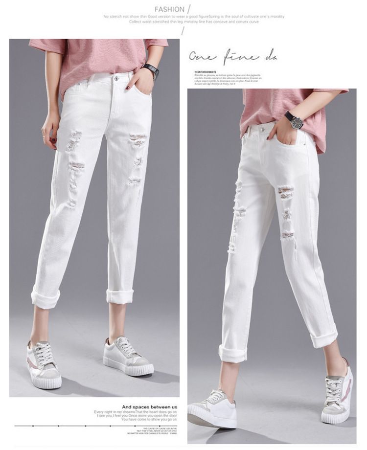 顯高顯瘦經典四色新款破洞牛仔褲【買一送一】【白色】+【黑色】各一條(到手兩條,每條均價649元)