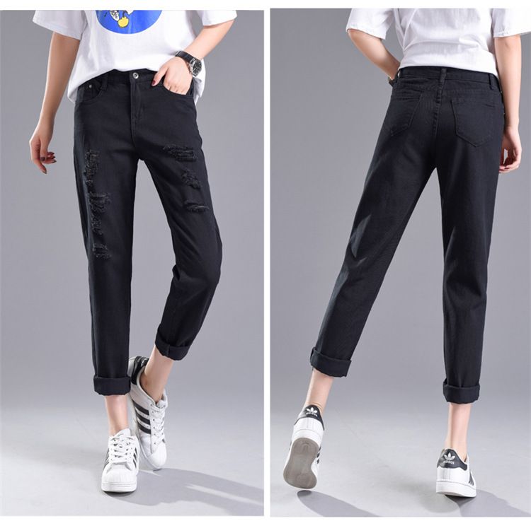顯高顯瘦經典四色新款破洞牛仔褲【買一送一】【黑色】+【深藍】各一條(到手兩條,每條均價649元)