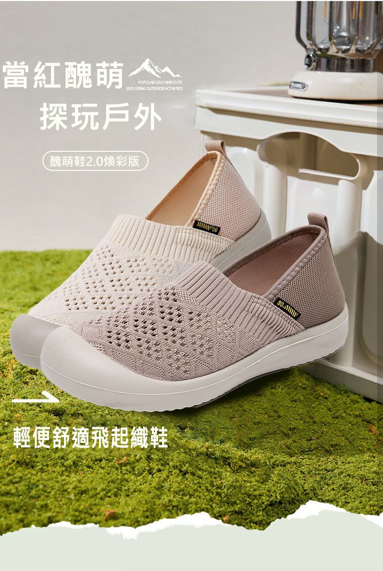 呼吸感網面輕便舒適飛織鞋【買一送一】米白色+咖色各一雙(到手兩雙,每雙均價649元!)