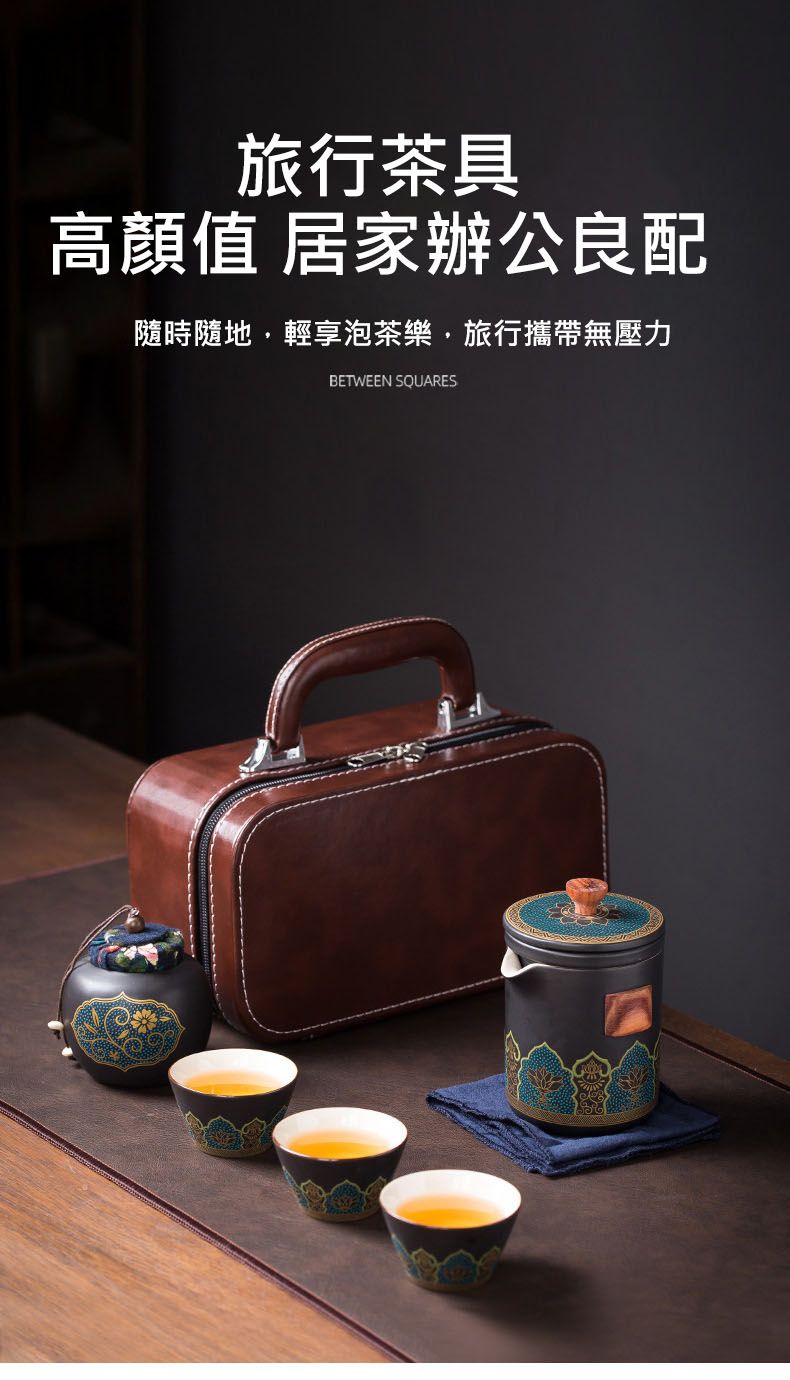 復古茶具套裝【黑色】一組(一壺三杯+茶葉罐+手提皮包)