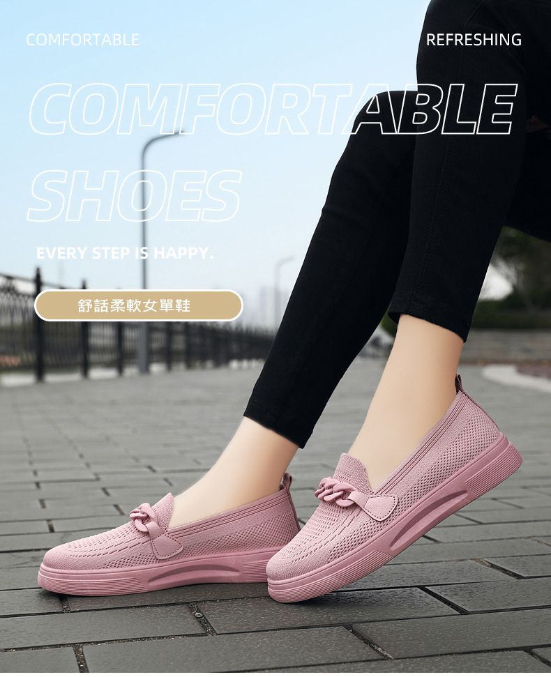 【手慢無!限時買一送一!】舒適飛織媽媽鞋【粉色】+【卡其色】各一雙