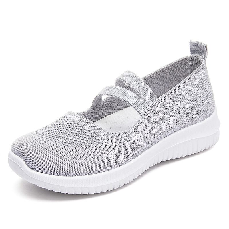 中老年軟底休閒透氣鞋【特惠買一送一】【灰色】+【粉紅色】各一雙