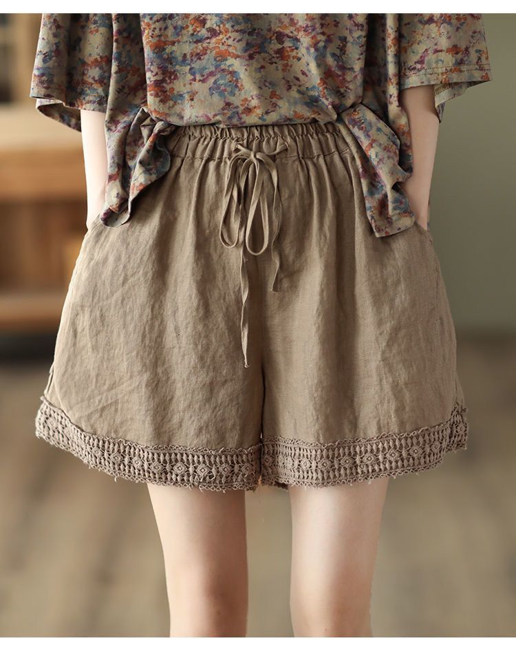 復古鏤空鉤花棉麻短褲【棕咖色】+【杏色】各一件(到手兩件,每件均價499元)