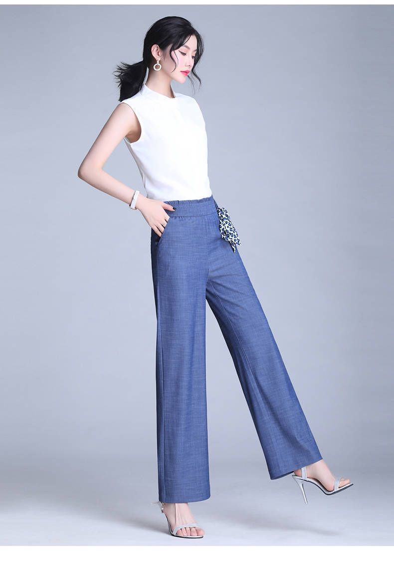 絲巾款垂感闊腿高腰直筒牛仔褲【買一送一】【深藍色】兩條(到手兩條,每條均價549元)
