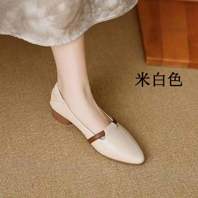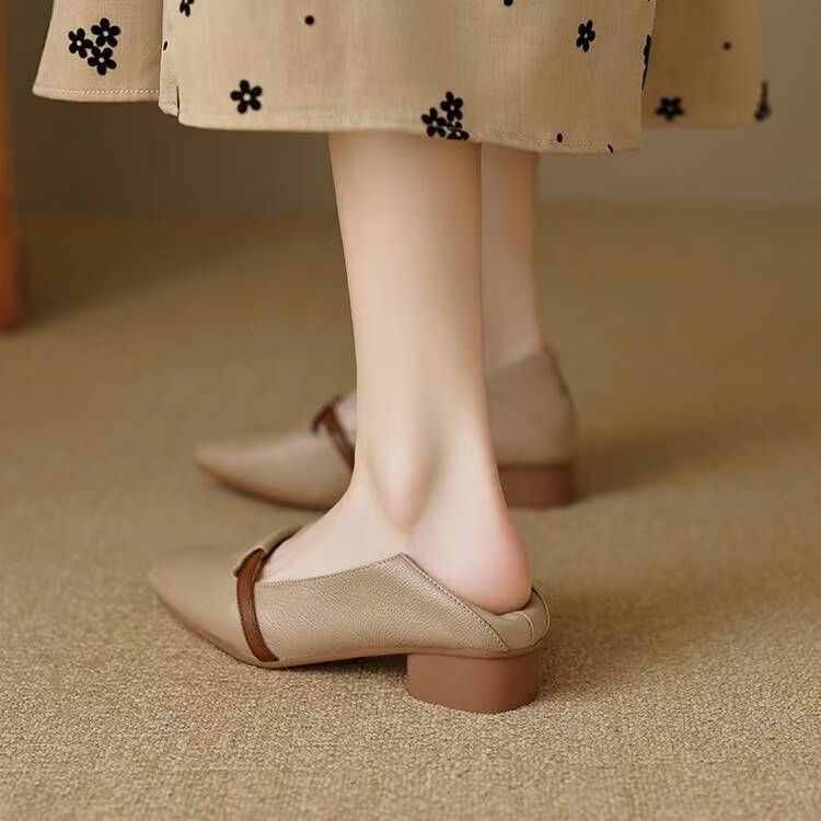 【熱銷爆款!四季可穿!限時特惠買一送一!】粗跟尖頭軟底軟皮一腳蹬女鞋
