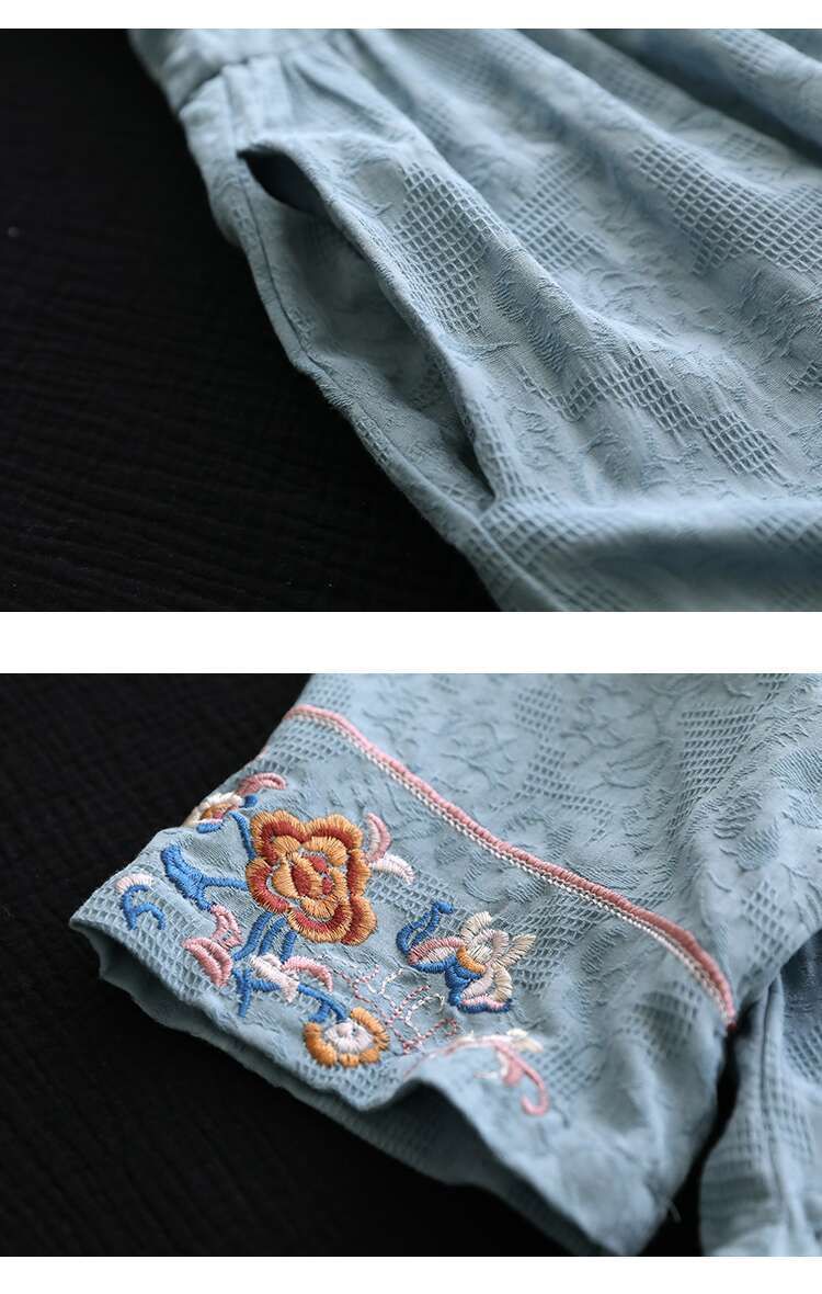 收腰抽繩顯瘦棉麻中長款連衣裙【加400元得2件!】【藍色】+【綠色】各一件