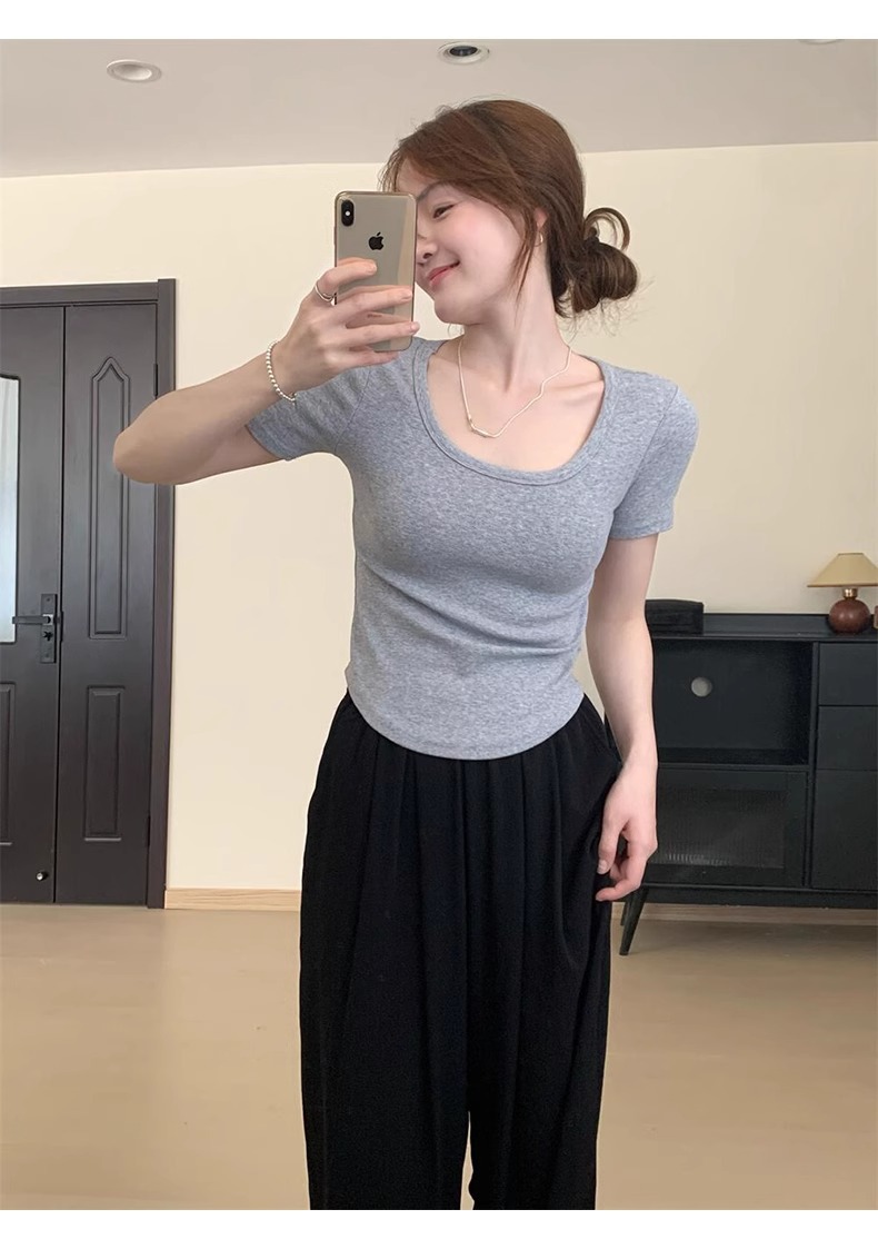 美式顯瘦修身設計感女士上衣【買一送三】黃色+灰色+白色+黑色各一件(到手4件!每件均價260元!)