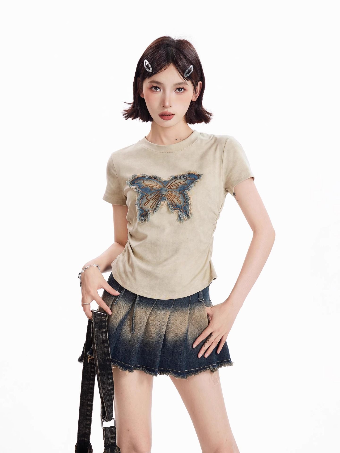 小個子修身短款蝴蝶短袖【買一送一】白色+卡其色各一件(到手兩件,每件均價499元)