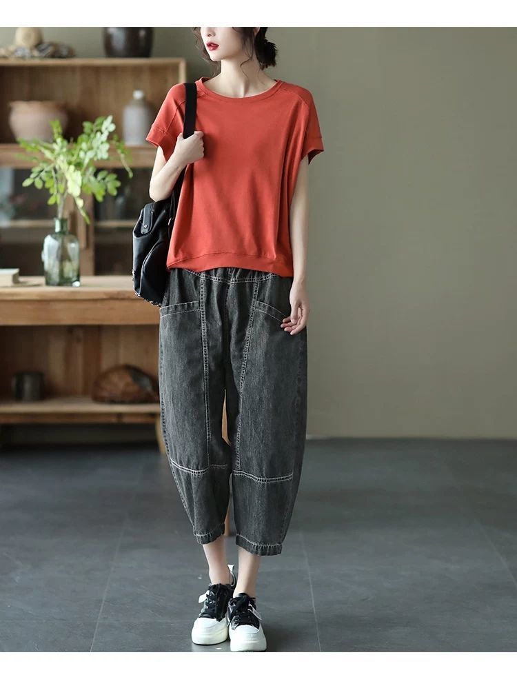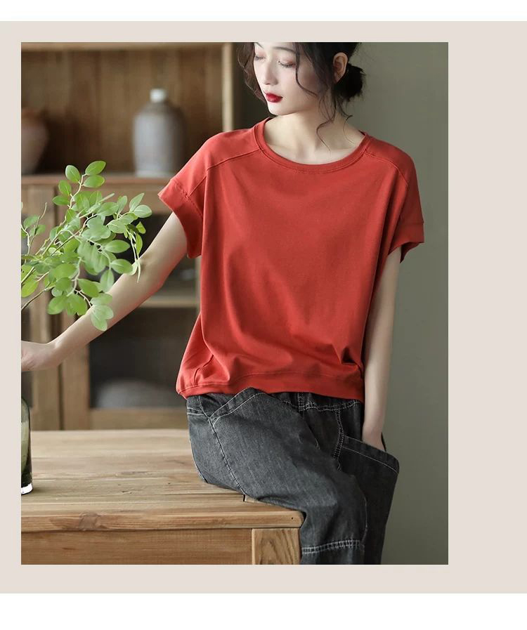 簡單大方圓領透氣純色T恤【加200秒殺4件!】紅色+綠色+咖色+黑色各一件(到手4件,均價299元!)