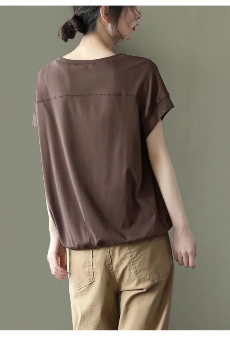 簡單大方圓領透氣純色T恤【買一送二】綠色+咖色+黑色各一件(到手三件,均價333元!)