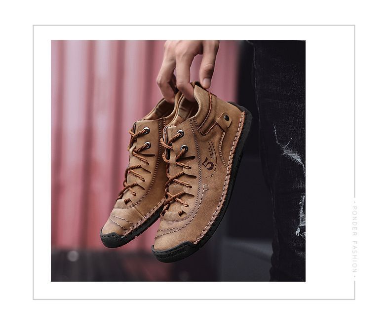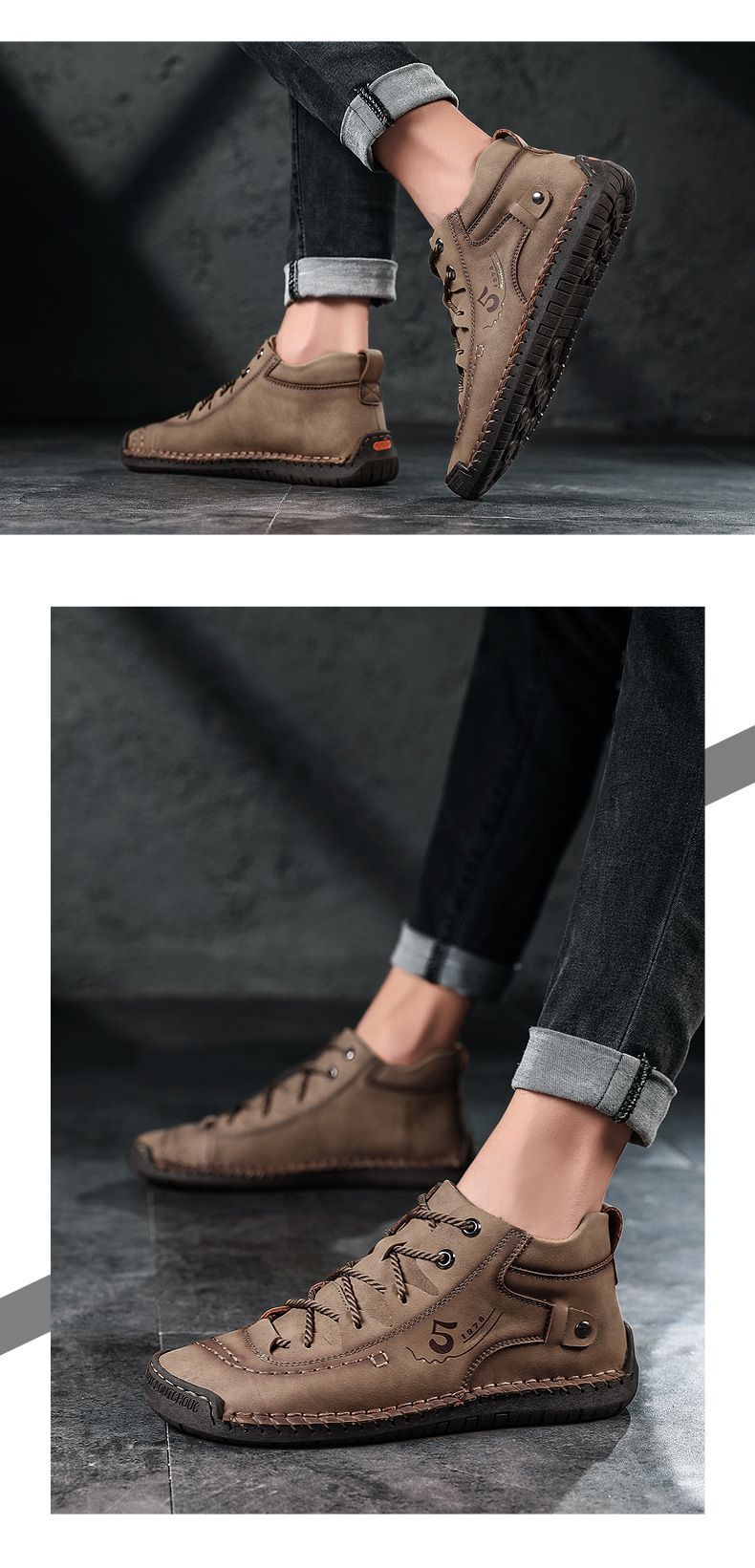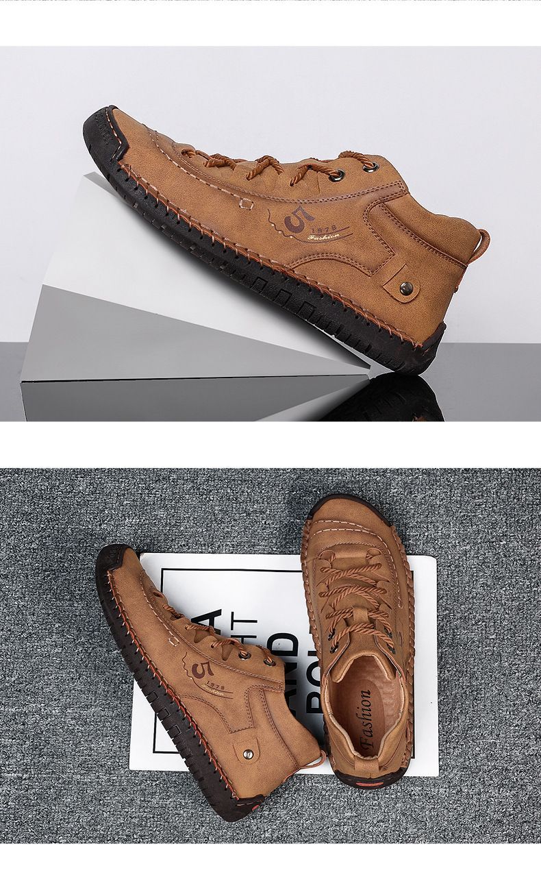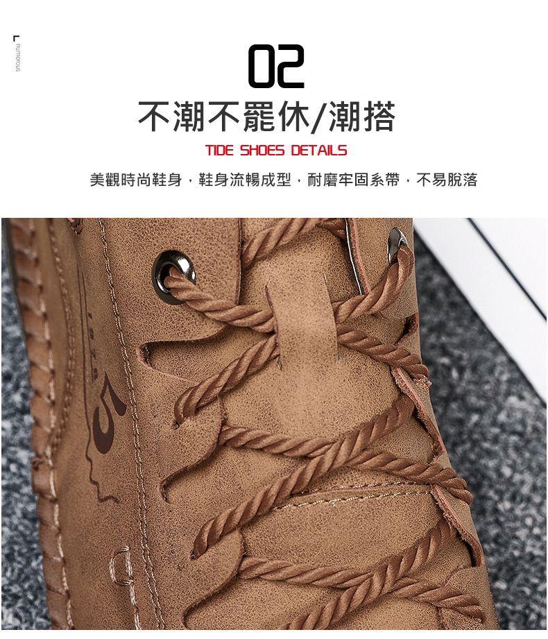 【大老闆專享】復古縫線高幫耐穿潮流工裝皮鞋【卡其色】+【棕色】各一雙(優惠400)