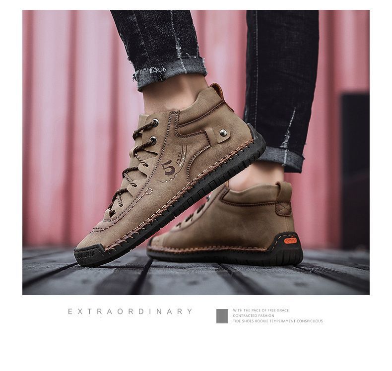 【大老闆專享】復古縫線高幫耐穿潮流工裝皮鞋【卡其色】一雙