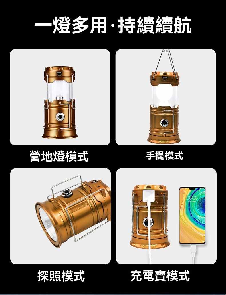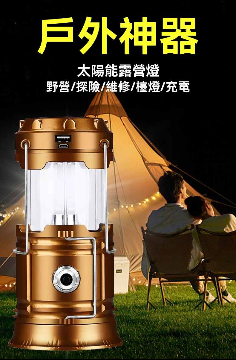 太陽能多功能戶外便攜式露營燈【買一送一】金色+藍色各一組(到手2組,每組均價399元!)