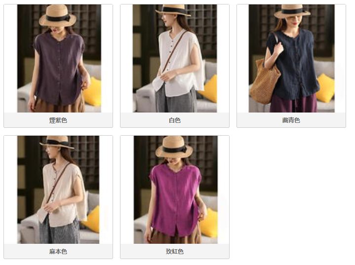 涼快寬鬆花邊領紐扣棉麻上衣【煙紫色】+【玫紅色】各一件(到手兩件,每件均價549元)