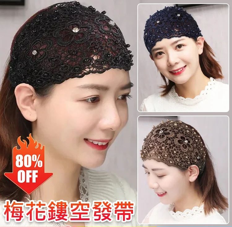 修飾臉型遮白髮梅花鏤空髮帶【買二送二!】藏青色+黑色+灰色+土黃色各一組(到手四組,每組均價200元!)