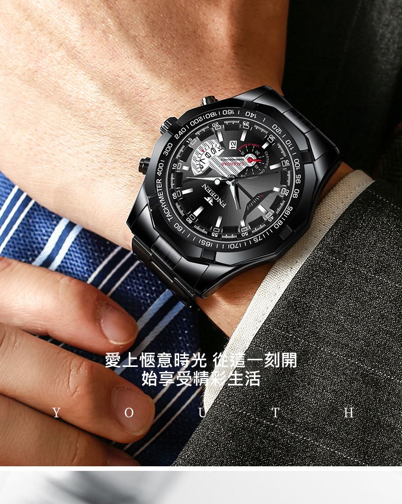 【美學新風尚】超大新日曆大錶盤男士手錶【全金黑面】一塊