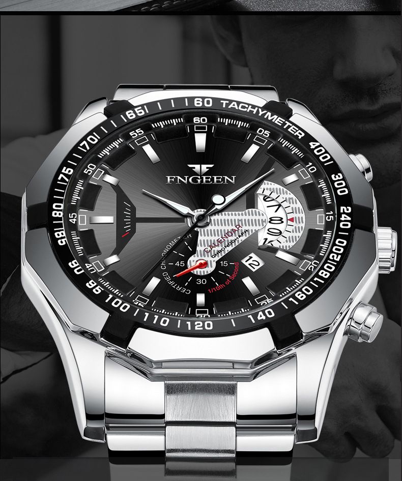 【美學新風尚】超大新日曆大錶盤男士手錶【白鋼黑面】一塊