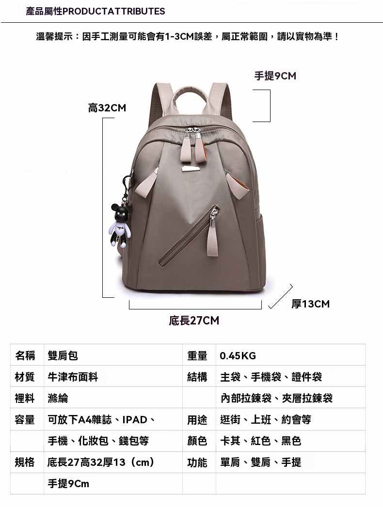 牛津布時尚潮流雙肩女包【卡其色】一組