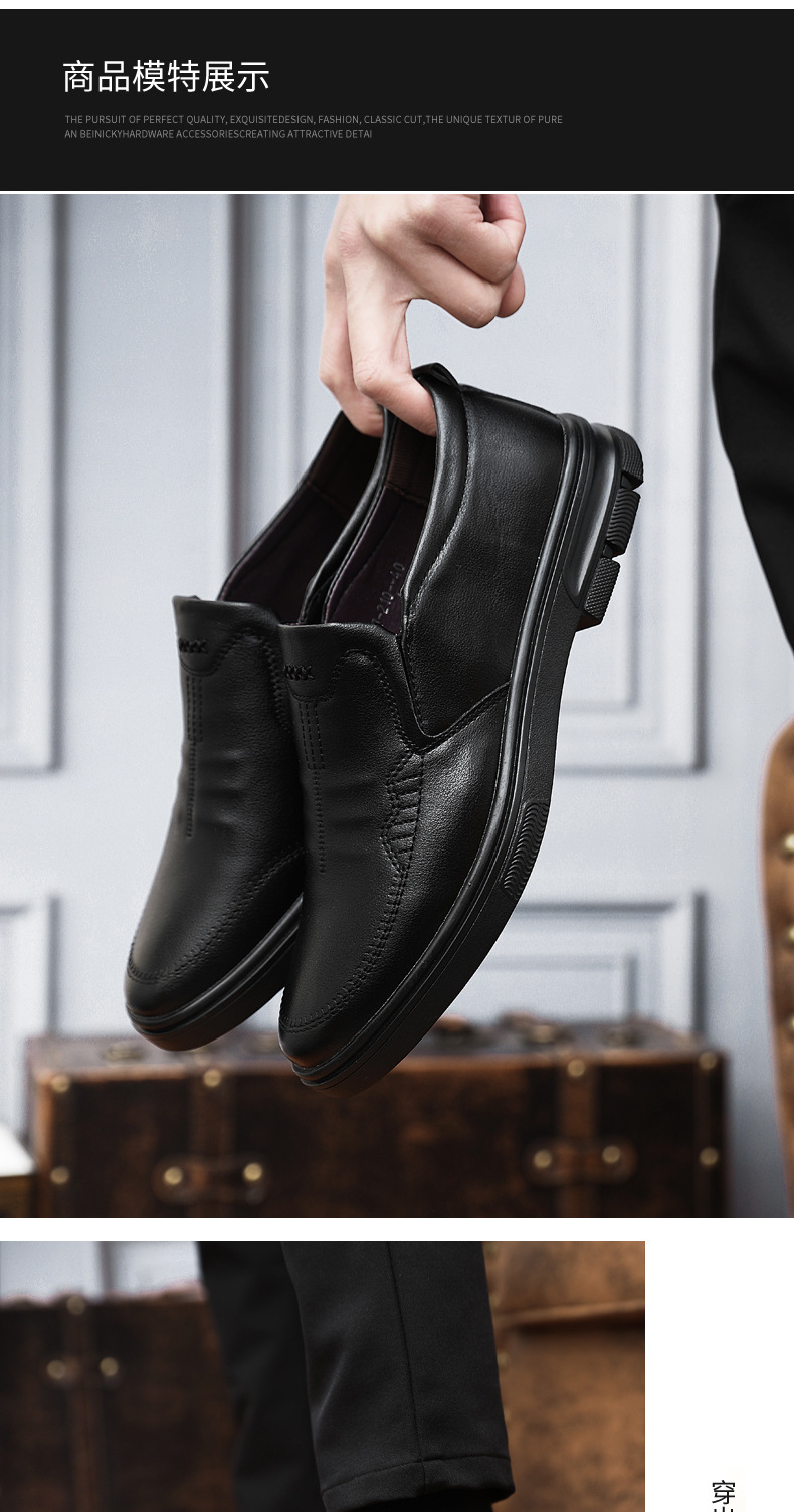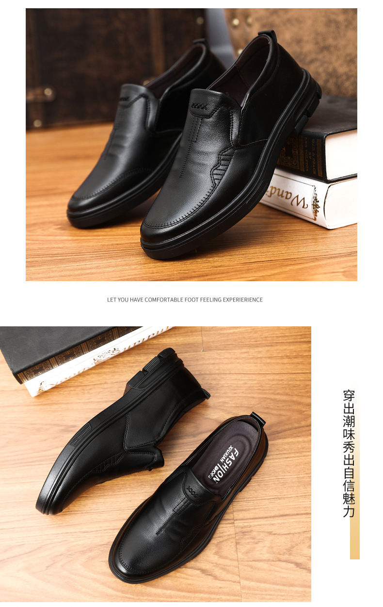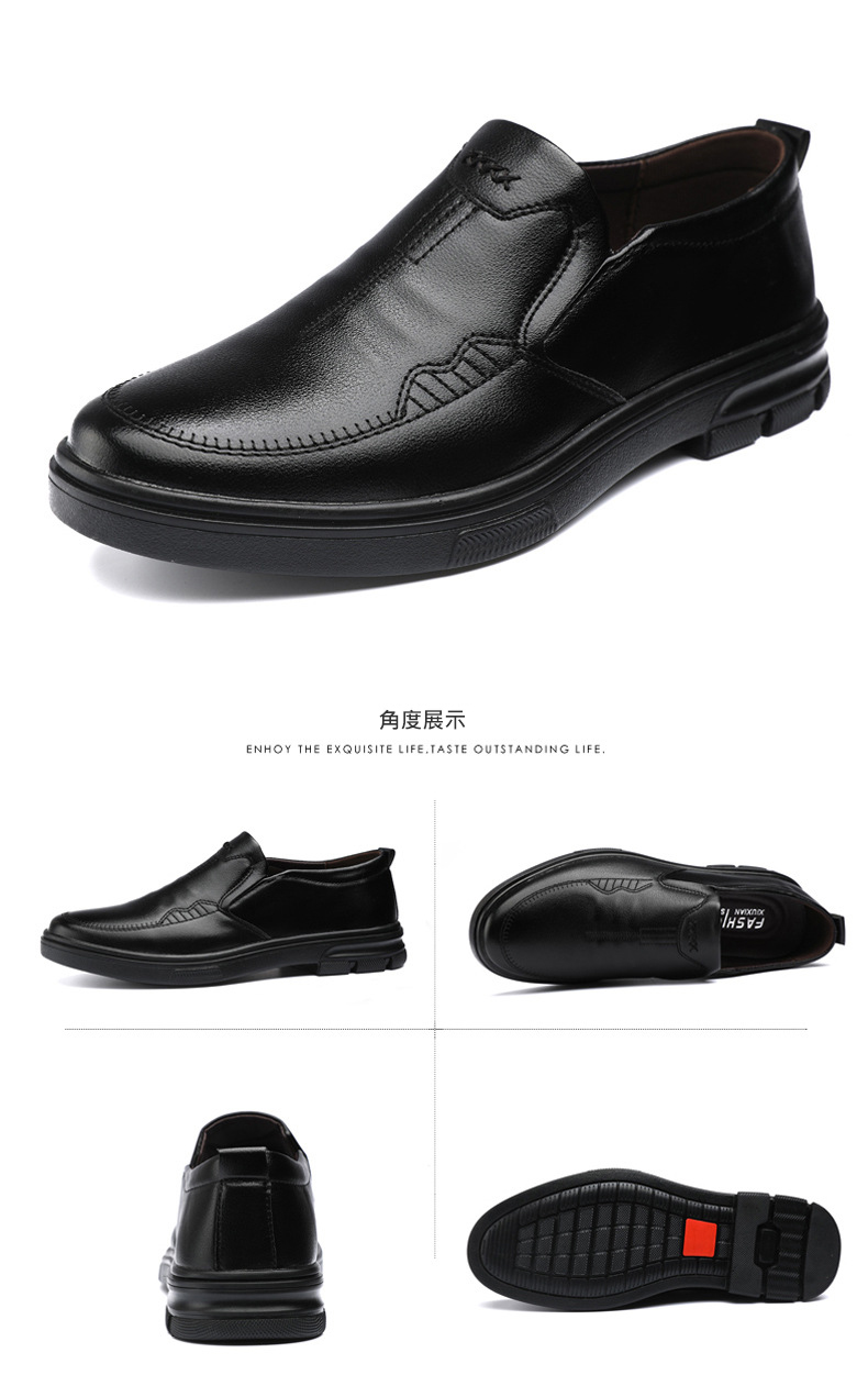 牛筋底舒適透氣套腳男士皮鞋【買一送一】【黑色】兩雙 (到手兩雙,每雙均價649元!)