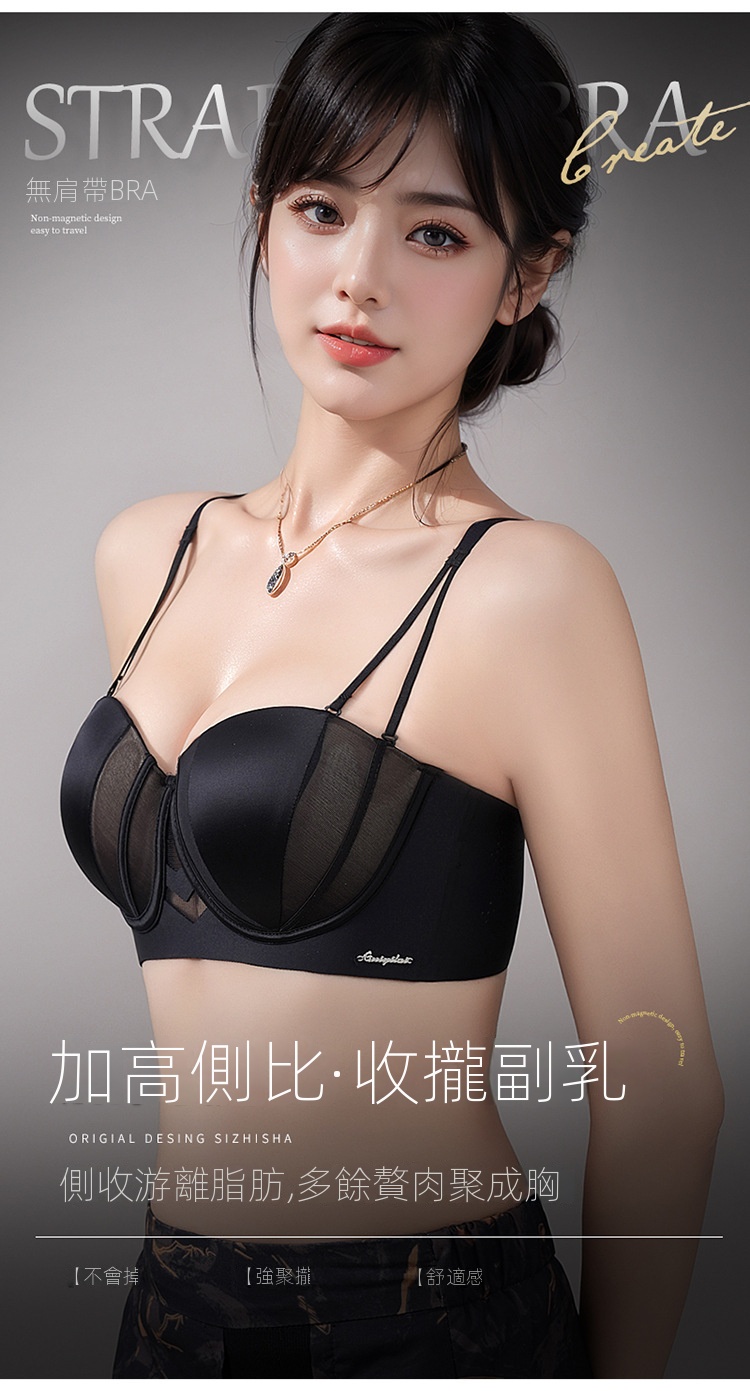夏季抹胸可拆卸提拉無痕半杯無肩帶內衣【買一送一】黑色+淺灰色各一件(到手兩件,每件均價649元!)