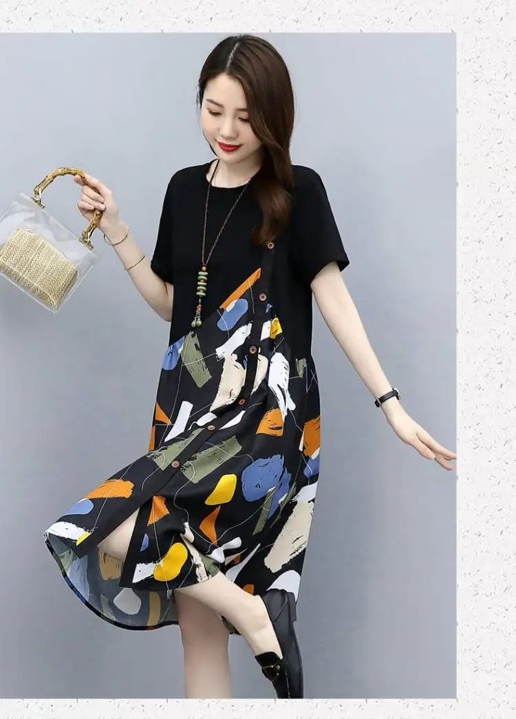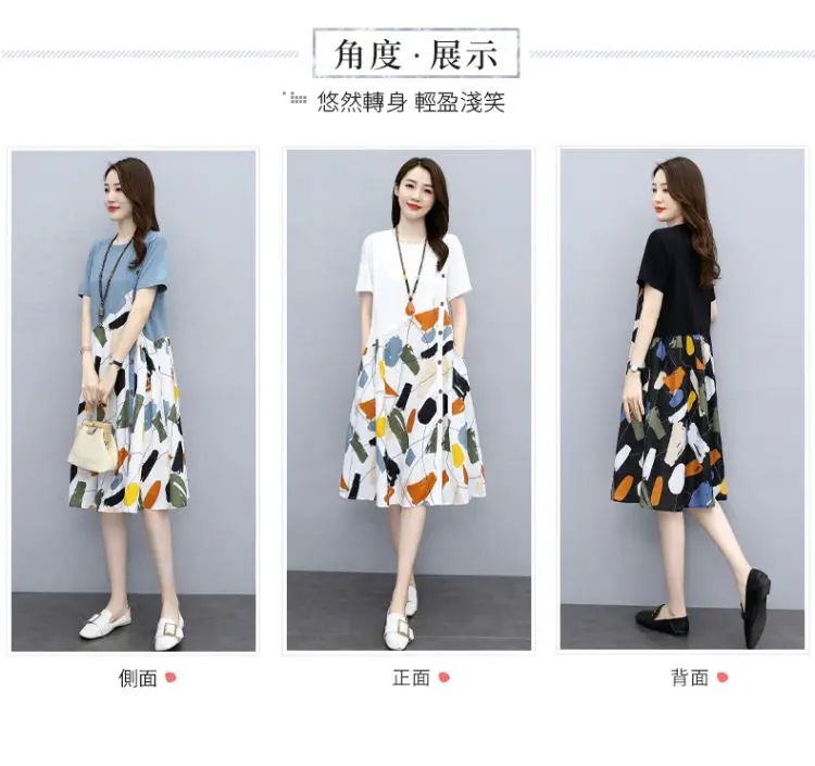 冰涼清爽拼接印花爆款連衣裙【買一送一】白色+黑色各一件(到手兩件,每件均價549元)