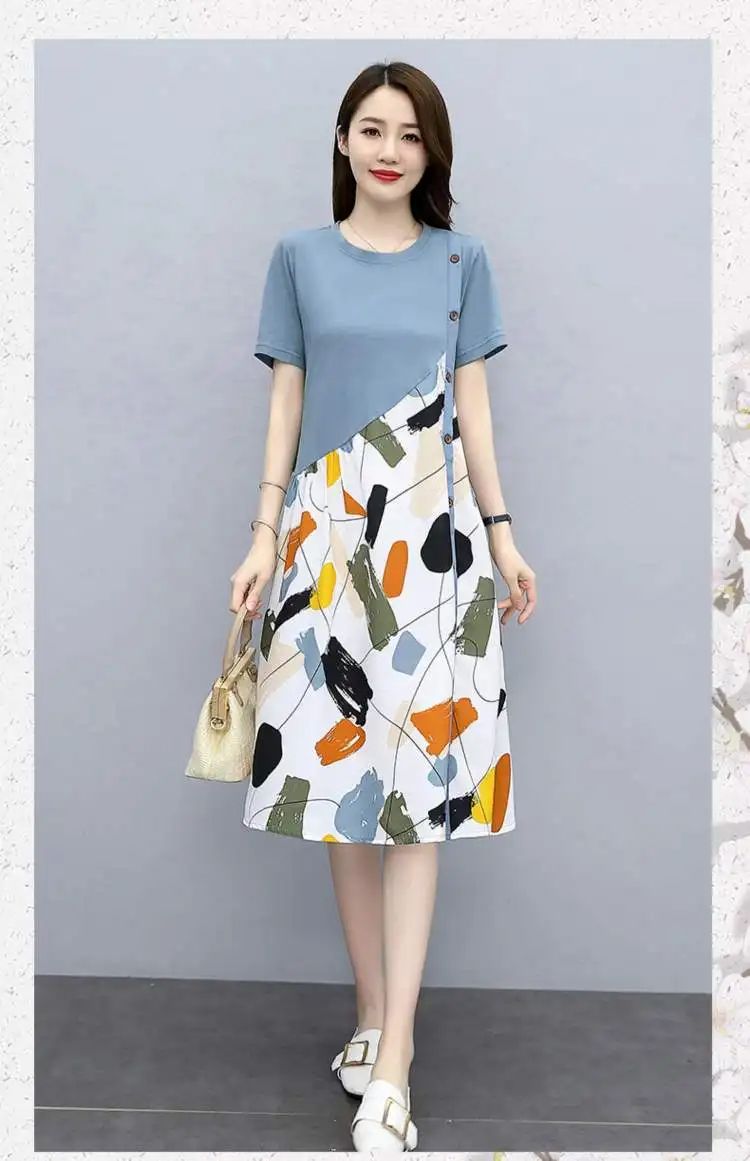 冰涼清爽拼接印花爆款連衣裙【買一送一】藍色+黑色各一件(到手兩件,每件均價549元)