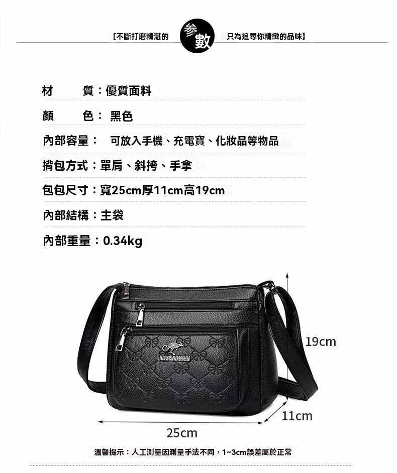 質感中年百搭女士單肩包黑色2組(優惠400,到手2組,每組均價498元!)