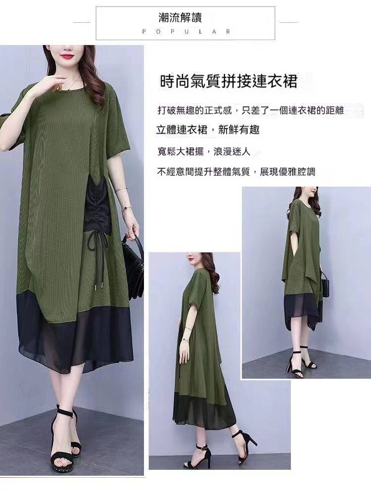 夏季顯瘦遮肉氣質拼接中長款連衣裙【買一送一】綠色+黑色各一件(到手兩件,每件均價549元)