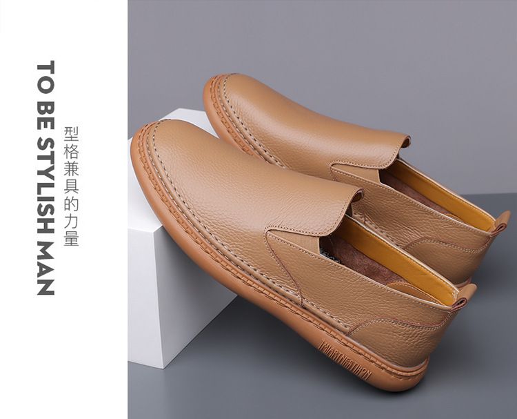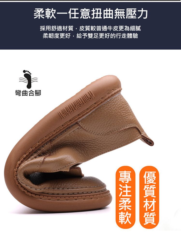 透氣懶人一腳蹬軟底休閒皮鞋【米色】+【棕色】各一雙(優惠400)