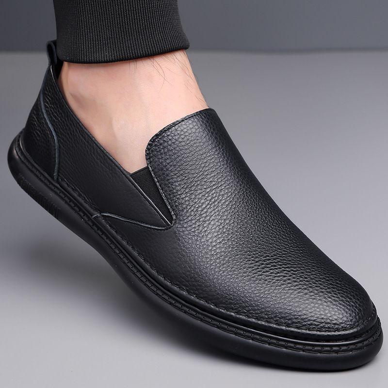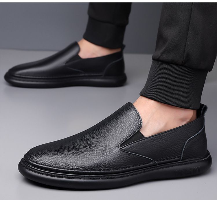 透氣懶人一腳蹬軟底休閒皮鞋【黑色】一雙