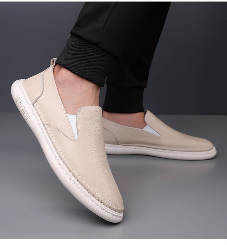 透氣懶人一腳蹬軟底休閒皮鞋【米色】一雙