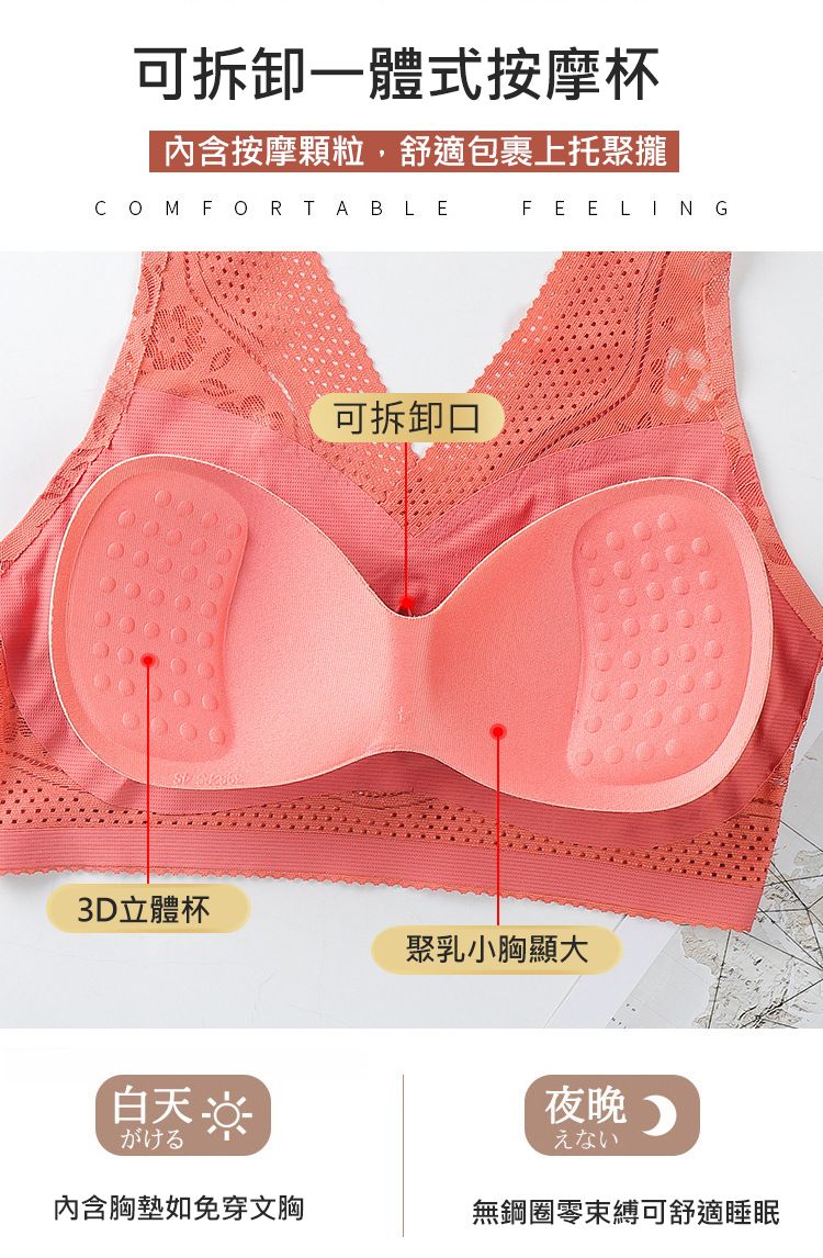 蕾絲美背帶胸墊無痕內衣【買一送二】膚色+灰色+桔紅色各一件(到手3件,每件均價333元!)