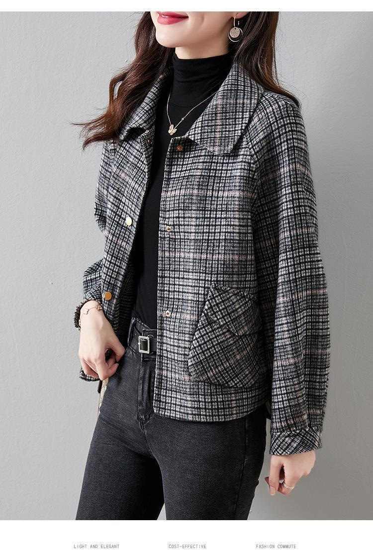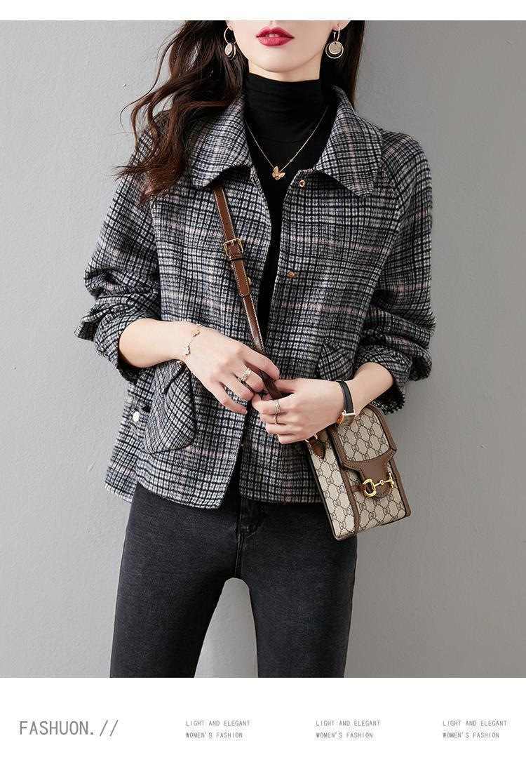小香風短款格子粗花毛呢外套1件