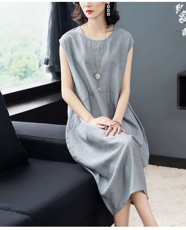 大氣簡約純色文藝中長款連衣裙【【買一送一】【銀灰色】兩件(到手兩件,每件均價549元)
